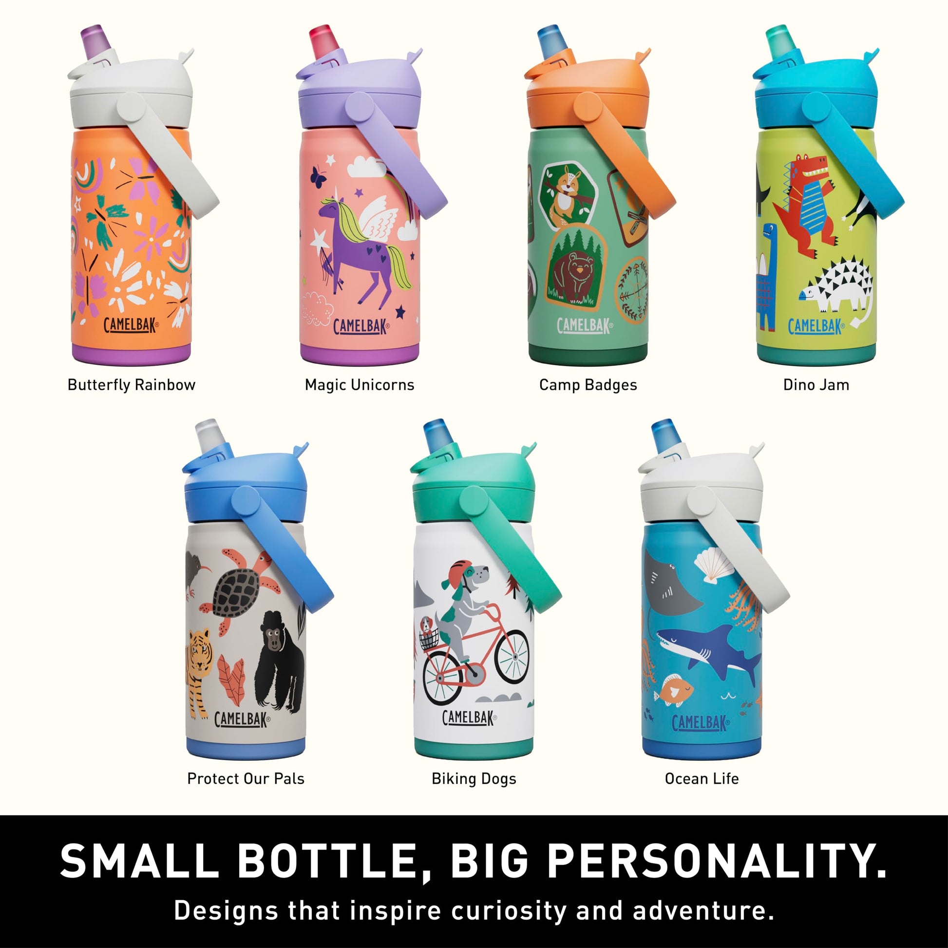 CamelBak Thrive Flip Straw Kids Bite Valve Stainless Steel Water Bottle Biking Dogs, 12oz