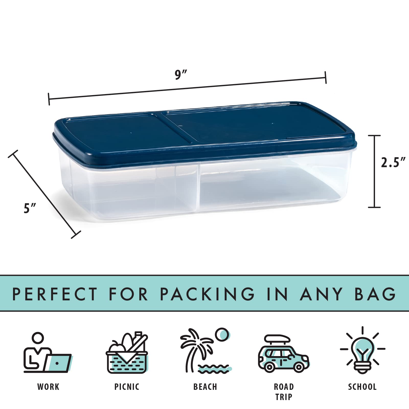 Fit & Fresh Bento Box Adult and Kids Lunch Box Container, Includes 2 Slim Clip-in Ice Packs, Reusable, Leak-Resistant, & Stackable Lunch Container for Adults